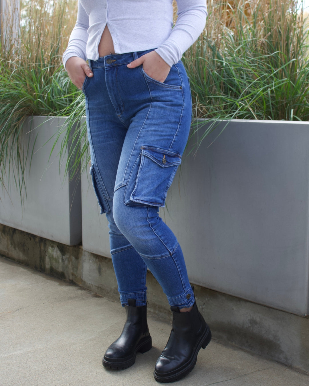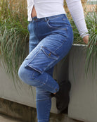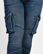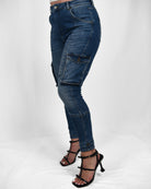 Introducing the Columbus Jeans - a modern cargo with a flattering twist. Designed with a high-rise fit and skinny leg silhouette, these jeans combine utility style with an effortlessly feminine shape. Made from a dark-wash denim with just the right amount of stretch, they hug in all the right places while maintaining structure and durability. Featuring cargo pockets, contoured seams, and custom Marel hardware, the Columbus Jeans are built to move with confidence and ease.