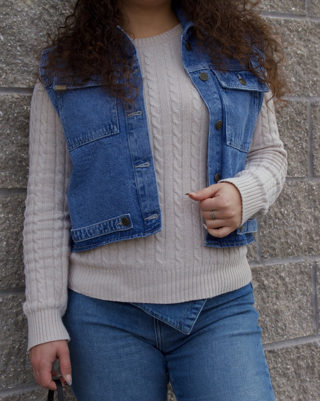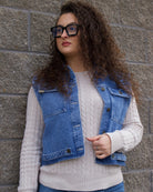 Effortlessly cool with a thoughtful twist — this medium-wash denim piece is designed to move with your style. Made from 100% cotton and finished with a soft tencel blend, it features a removable ruffled white hem that unzips for a second look in one. Functional pockets, a custom woven label, and signature buttons add subtle detail, while the embroidery inside the collar is a hidden nod to craftsmanship.