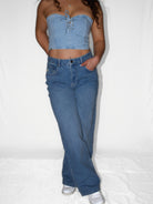 A structured shape with soft edges. The Phoenix Top is a denim corset-style piece designed to sculpt without feeling restrictive. Made from structured cotton with a hint of stretch, it features a functional tie at the center front bust, a secure zipper + hook-and-eye closure at the back, and clean seam detailing throughout. Feminine, fitted, and made to stand on its own or layer up.